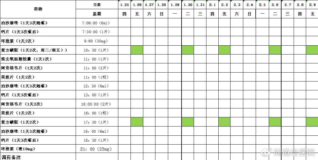 在醫(yī)院的時候,醫(yī)生和護士每天查房和記錄,但是出院后,尤其移植后就需要陪護更加操心,記錄的價值在于建立病患的軌跡,從每天吃藥的數(shù)量,時間,護理,飲食等等這些,我將這些做成了表格,方便每天記錄。