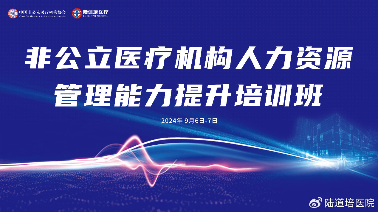 為加強行業(yè)人才鏈建設(shè),進一步推動我國非公立醫(yī)療機構(gòu)人力資源管理的專業(yè)化、精細化進程,提升行業(yè)整體人才管理水平與招聘效率,構(gòu)建高效、穩(wěn)定、可持續(xù)發(fā)展的人才梯隊,2024年9月6日-7日,由中國非公立醫(yī)療機構(gòu)協(xié)會主辦,陸道培醫(yī)療集團承辦,丁香人才提供媒體支持的非公立醫(yī)療機構(gòu)人力資源管理能力提升培訓班在北京陸道培醫(yī)院順利召開。北京陸道培醫(yī)院運營執(zhí)行院長陸鳴岡、陸道培醫(yī)療集團副總裁/運營總監(jiān)趙奕參加會議并致辭。