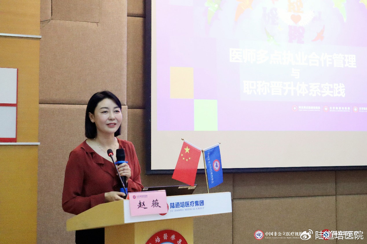 陸道培醫(yī)療集團(三院區(qū))醫(yī)務(wù)部主任趙薇就《醫(yī)師多點執(zhí)業(yè)合作管理與職稱晉升體系實踐》進行授課。