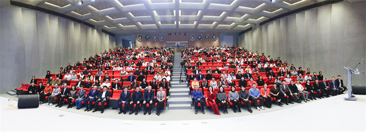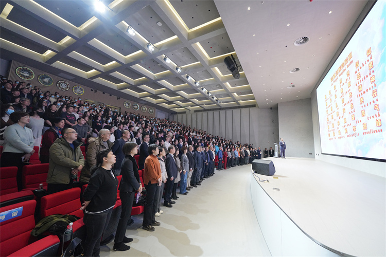 全體起立,悠揚的院歌之后,谷業(yè)迪院長帶領(lǐng)大家重溫院訓(xùn)。