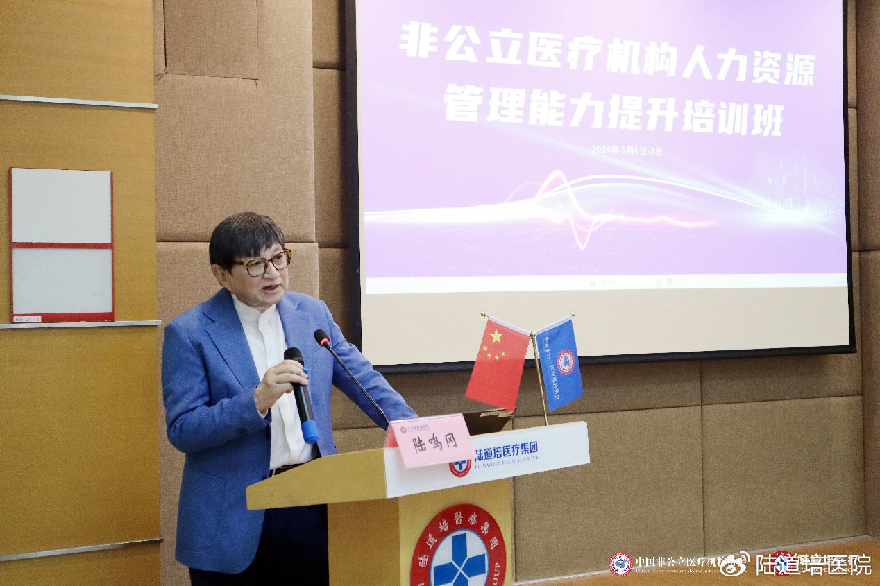 為加強行業(yè)人才鏈建設(shè),進一步推動我國非公立醫(yī)療機構(gòu)人力資源管理的專業(yè)化、精細化進程,提升行業(yè)整體人才管理水平與招聘效率,構(gòu)建高效、穩(wěn)定、可持續(xù)發(fā)展的人才梯隊,2024年9月6日-7日,由中國非公立醫(yī)療機構(gòu)協(xié)會主辦,陸道培醫(yī)療集團承辦,丁香人才提供媒體支持的非公立醫(yī)療機構(gòu)人力資源管理能力提升培訓班在北京陸道培醫(yī)院順利召開。北京陸道培醫(yī)院運營執(zhí)行院長陸鳴岡、陸道培醫(yī)療集團副總裁/運營總監(jiān)趙奕參加會議并致辭。