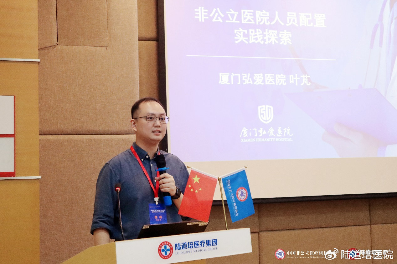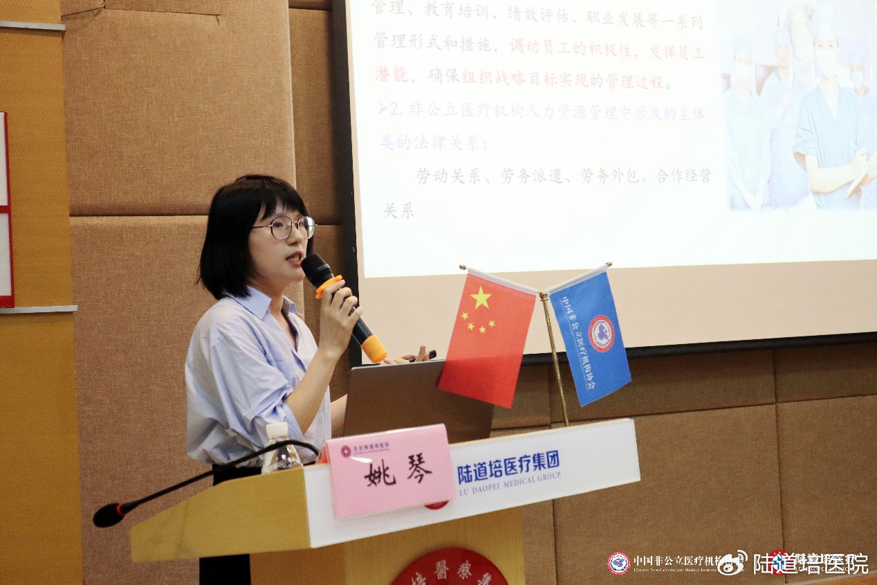 廈門弘愛醫(yī)院人力資源部經(jīng)理葉芃就《非公立醫(yī)院人員配置實踐探索》進行授課。